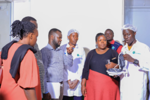 Part of the activities undertaken during this visit included; visiting small scale business startup exhibitions by young talented entrepreneurs, who some of them are former beneficiaries of MCC while others are current beneficiaries. Exhibitions included beverage processing & value addition, fast food businesses, bakery and tailoring among others. A group of young entrepreneurs exhibited exceptional agricultural skills that openly astonished, and mesmerized the visitors!: a one, JAT Mixed Farm, enlightened and explained how they have successfully carried out many agricultural activities such a poultry, piggery, aquaculture and agro-procesing amidst limited resources. With this kind presentation, the young founders of JAT Mixed Farm portrayed their unmatched resilience through adaptation, creativity and innovation: thanks to I-UPSHIFT Project. The visiting team expressed immense gratitude sighting that the original objective of starting MCC is being fulfilled.